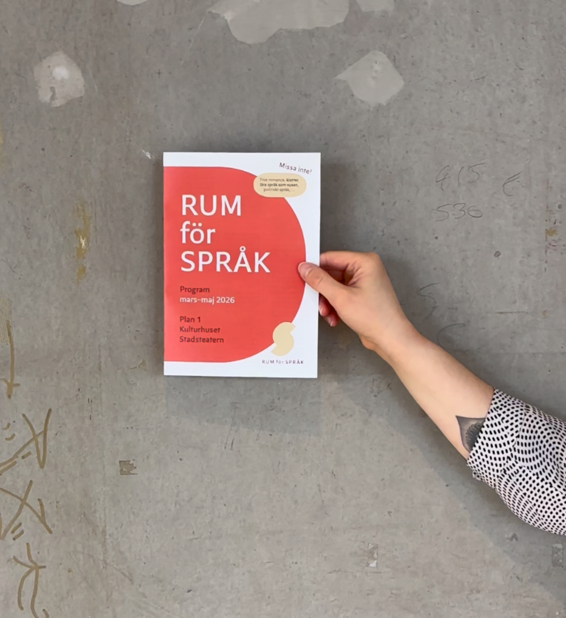 Lekfullt, lärorikt och levande – i Språkmuseets Rum för språk får du uppleva, utforska och ifrågasätta språket – genom konst, samtal och spännande evenemang. Fri entré och öppet för alla. Observera att vissa aktiviteter kräver anmälan, läs mer om detta under respektive aktivitet.